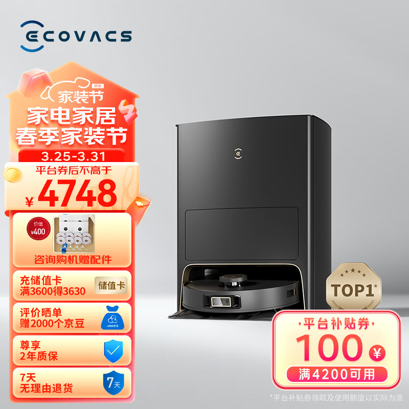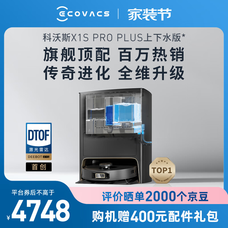 科沃斯(ECOVACS)扫地机器人X1S PRO PLUS上下水版扫拖一体自动集免洗抹布智能家用洗地机集尘全自动清洗全能版价格:4848.00元!