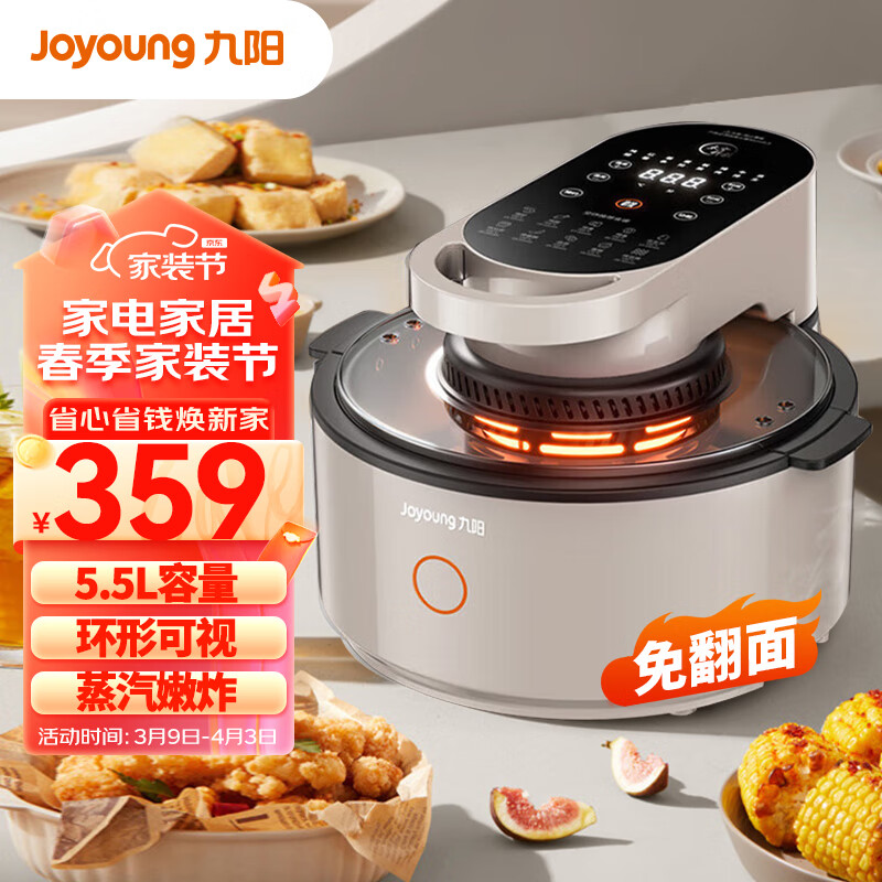 九阳(Joyoung)太空空气炸锅 不用翻面 可视窗口 5.5L大容量 家用多功能不沾易清洗 VF736价格:409.00元!