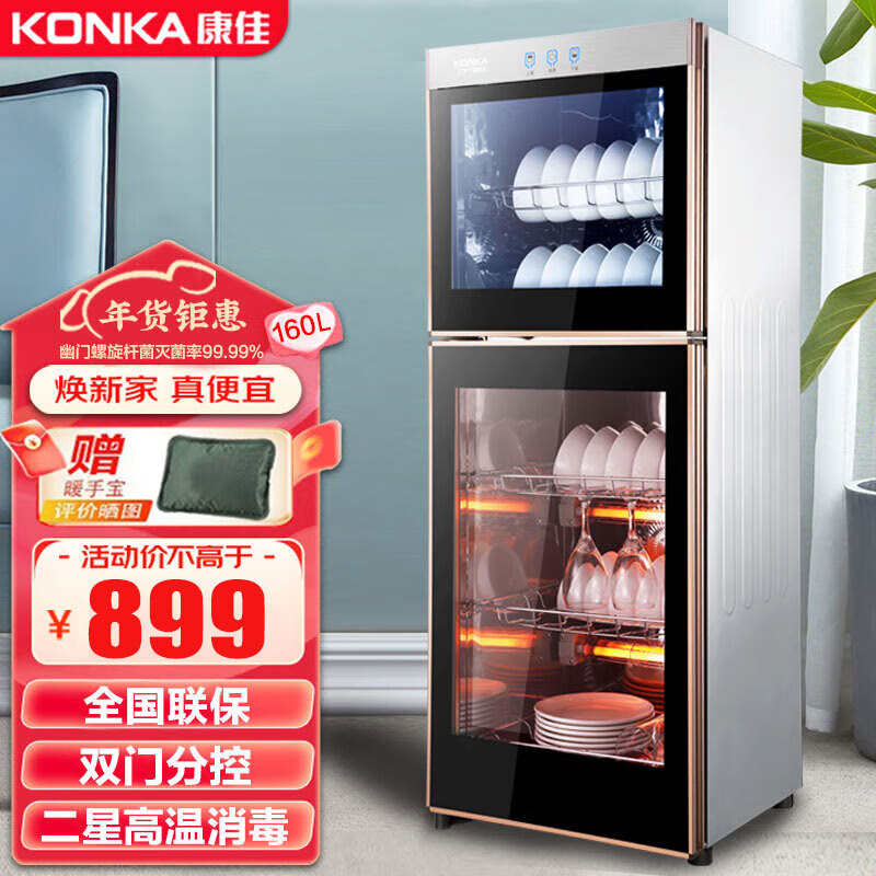 康佳(KONKA)消毒柜立式消毒碗柜商用家用臭氧高温二大容量餐具消毒柜双门分控ZTP280K7价格:859.00元!