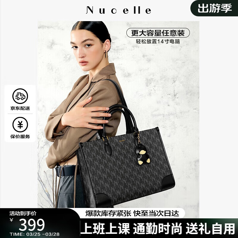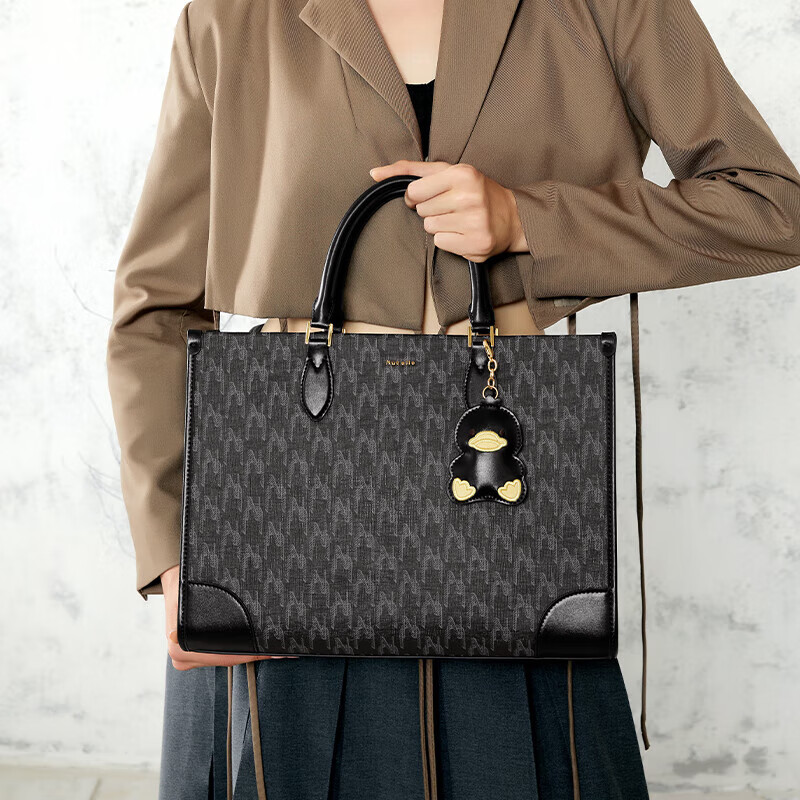 纽芝兰(NUCELLE)黑色鸭鸭托特包包2024新大容量单肩包上班通勤手提大包可放13寸笔记本实用走心生日礼物送女友送老婆送妈妈 113星尘黑大号价格:399.00元!