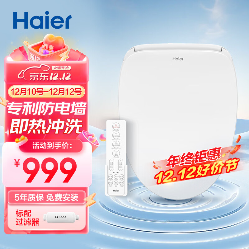 海尔(Haier)智能马桶盖 遥控即热电动加热抗菌坐便盖 自动夜灯 X1-5212价格:1499.00元!