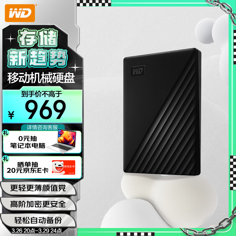 西部数据(WD) 5TB 移动硬盘 USB3.0 My Passport随行版2.5英寸 黑 机械硬盘 手机笔记本外置外接 兼容Mac价格:969.00元!