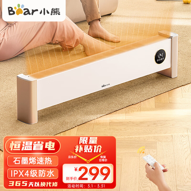 小熊(Bear)石墨烯踢脚线取暖器家用大面积电暖器电暖气片移动地暖防水浴室暖风机 智能恒温数显款DNQ-P20N6价格:299.00元!