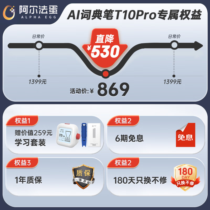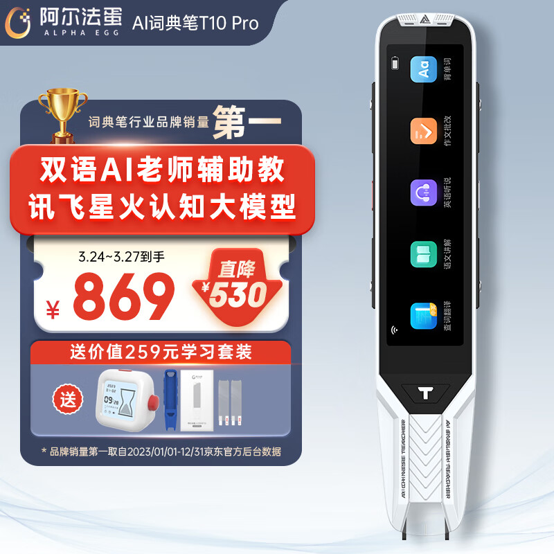 阿尔法蛋AI词典笔T10 Pro 点读笔英语学习翻译神器 电子词典翻译笔翻译机 扫描笔单词笔扫读笔 白色价格:869.00元!
