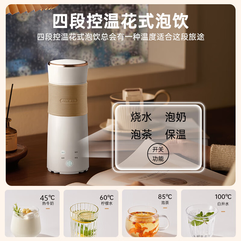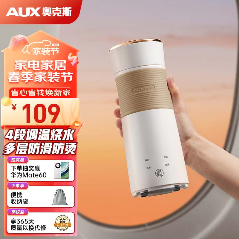 奥克斯(AUX)便携式家用旅行电热水壶随行冲奶泡茶办公室养生杯恒温热水壶电水杯HX-DR21价格:109.00元!