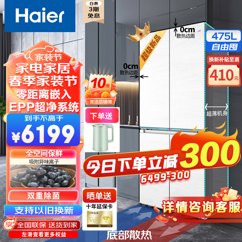 海尔(Haier)475升十字对开门冰箱 全空间保鲜 零距离嵌入式 一级能效 风冷无霜 BCD-475WGHTD1BGZU1价格:6699.00元!