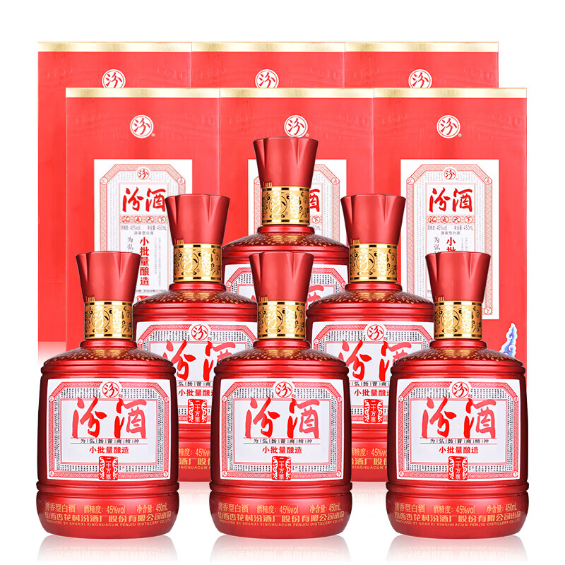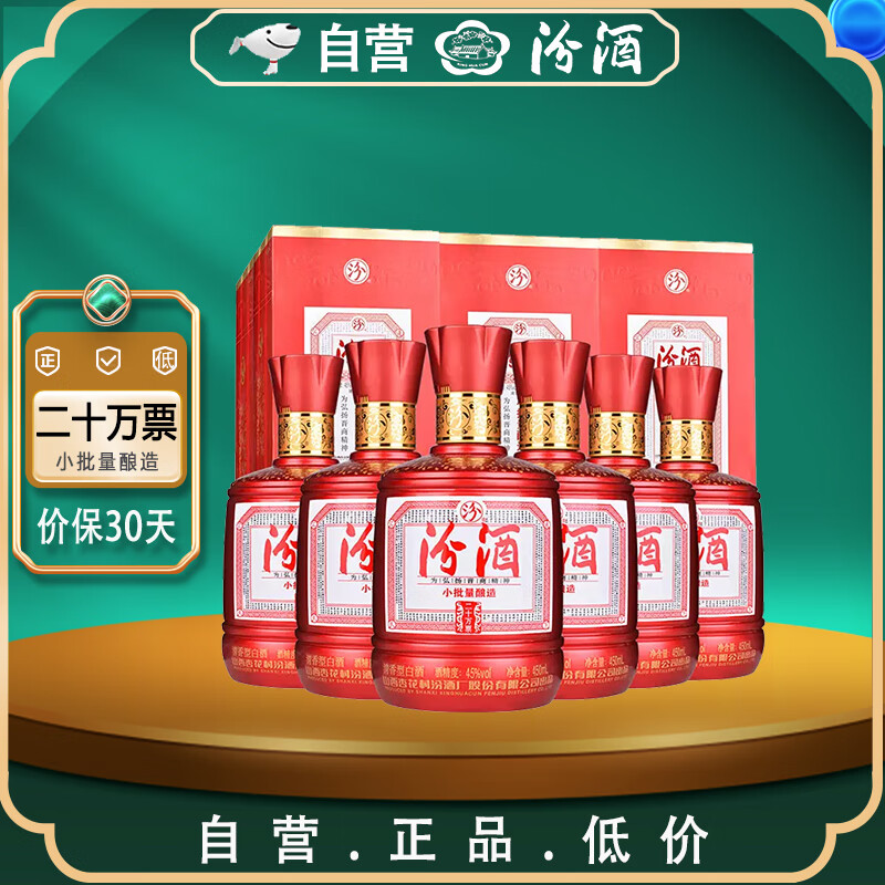 汾酒 小批量酿造(二十万票)清香型白酒 45度450mL*6 整箱价格:1399.00元!