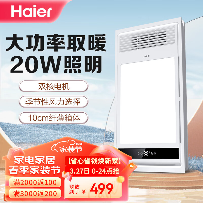 海尔风暖浴霸2600W大功率双电机卫生间浴霸灯浴室暖风机M5X价格:549.00元!