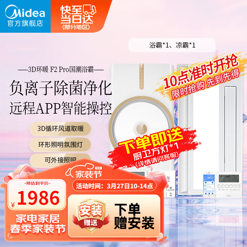 美的(Midea)风暖环形浴霸智能浴室暖风照明排气一体取暖器卫生间集成吊顶双核价格:2083.00元!