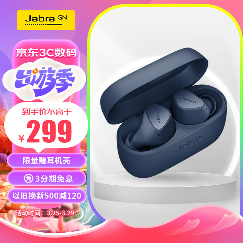 捷波朗(Jabra)Elite3 真无线蓝牙降噪耳机 蓝牙5.2 强劲续航(65t升级版E3) 安卓苹果音乐耳机 海军蓝色价格:299.00元!