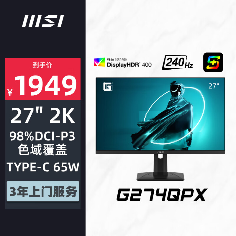 微星(MSI)27英寸 2K 240Hz HDR400 ADS Pro面板 1ms(GTG) 65W TYPE-C 98%DCI-P3 游戏电竞显示器屏 G274QPX价格:2199.00元!