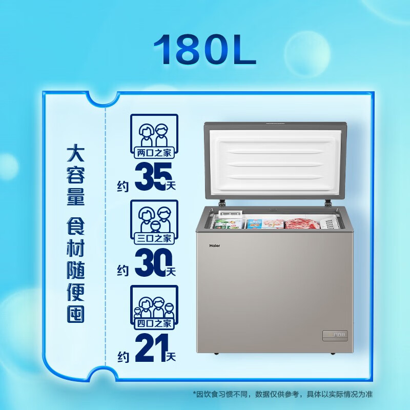 海尔(Haier)180升彩晶风冷商用家用冰柜 京东小家冷藏冷冻小冰柜家用小型冰箱冷柜BC/BD-180WEGU1以旧换新价格:2099.00元!