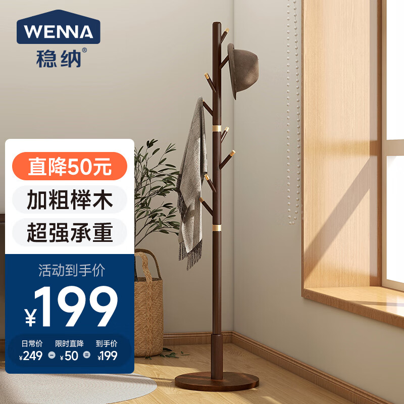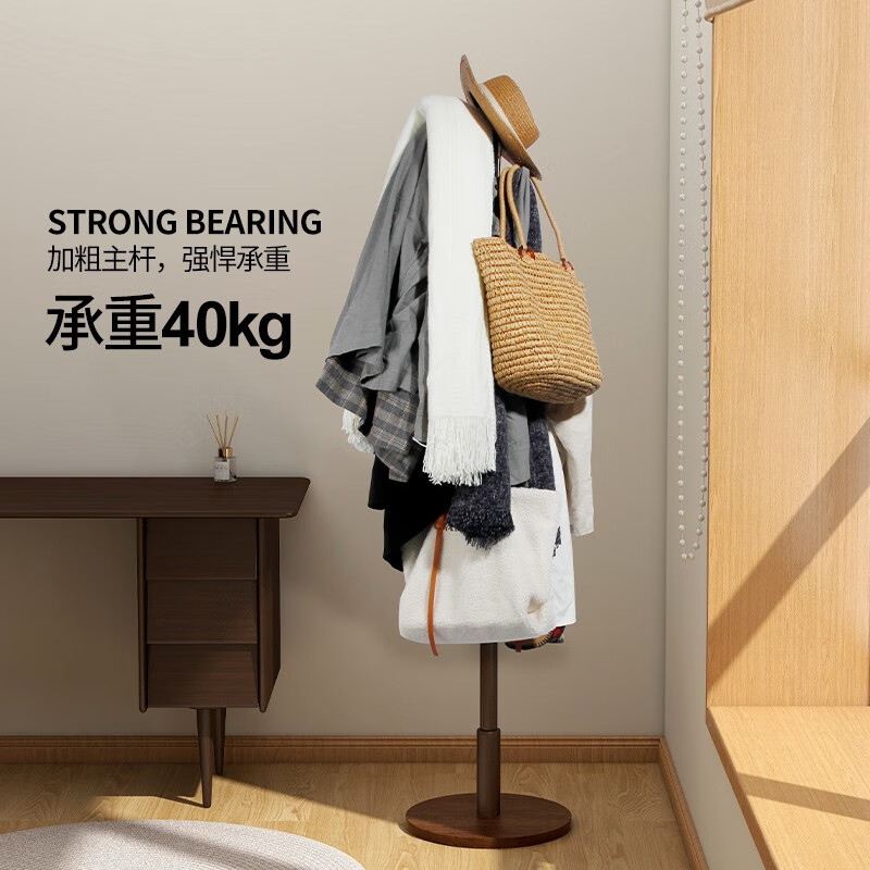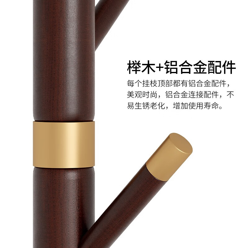 稳纳 衣帽架 榉木衣架落地挂衣架立式实木衣架胡桃色轻奢款8105T价格:170.00元!