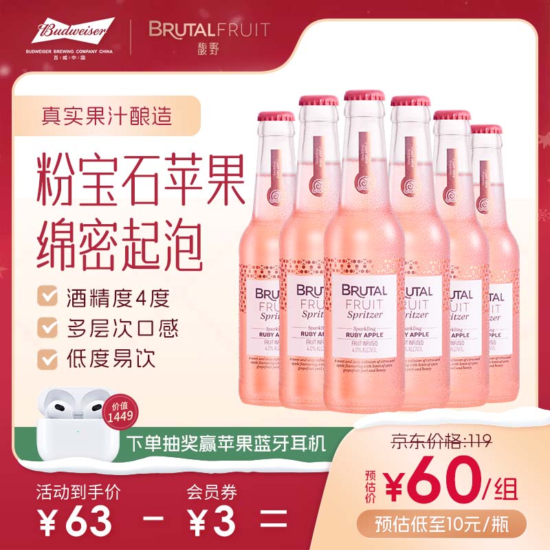 馥野百威预调鸡尾酒预调酒洋酒果酿起泡酒微醺果酒苹果味275ml*6瓶价格:93.00元!