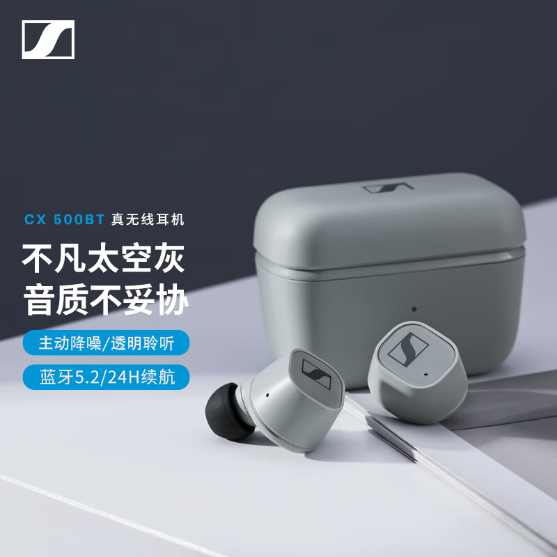 森海塞尔(Sennheiser)CX 500BT 真无线蓝牙5.2主动降噪耳机 入耳式耳机 太空灰价格:899.00元!