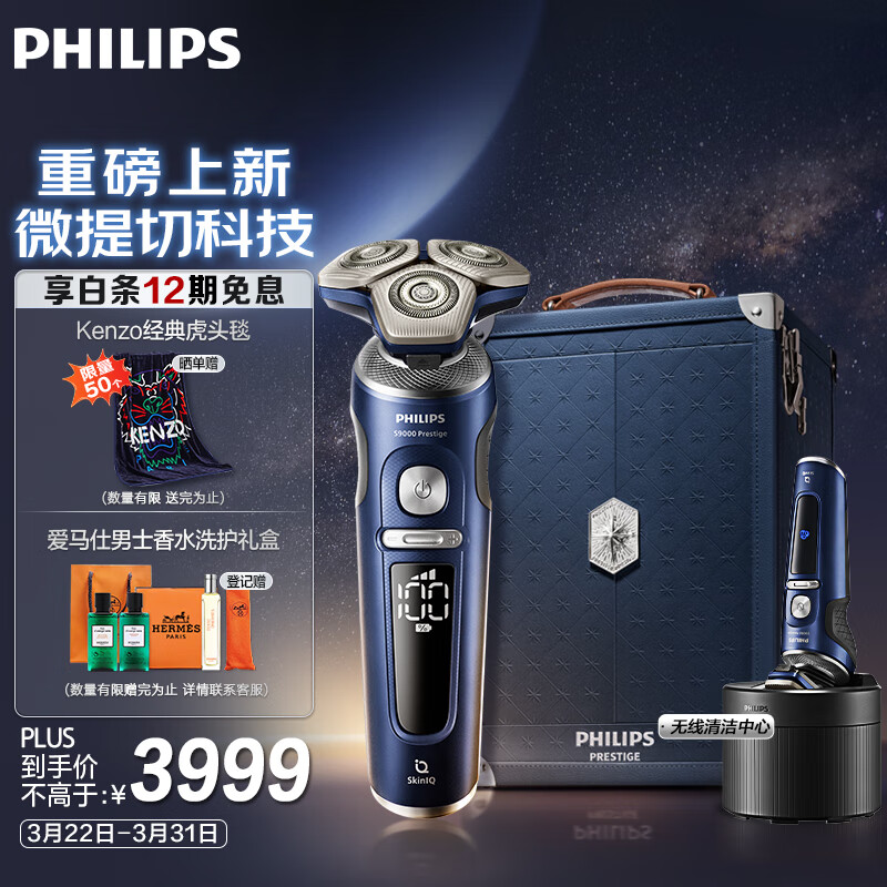 飞利浦(PHILIPS)电动剃须刀奢享蜂巢9系星空蓝礼盒 微提切科技刮胡刀 生日礼物 送男友 送老公【整机荷兰进口】价格:4209.00元!
