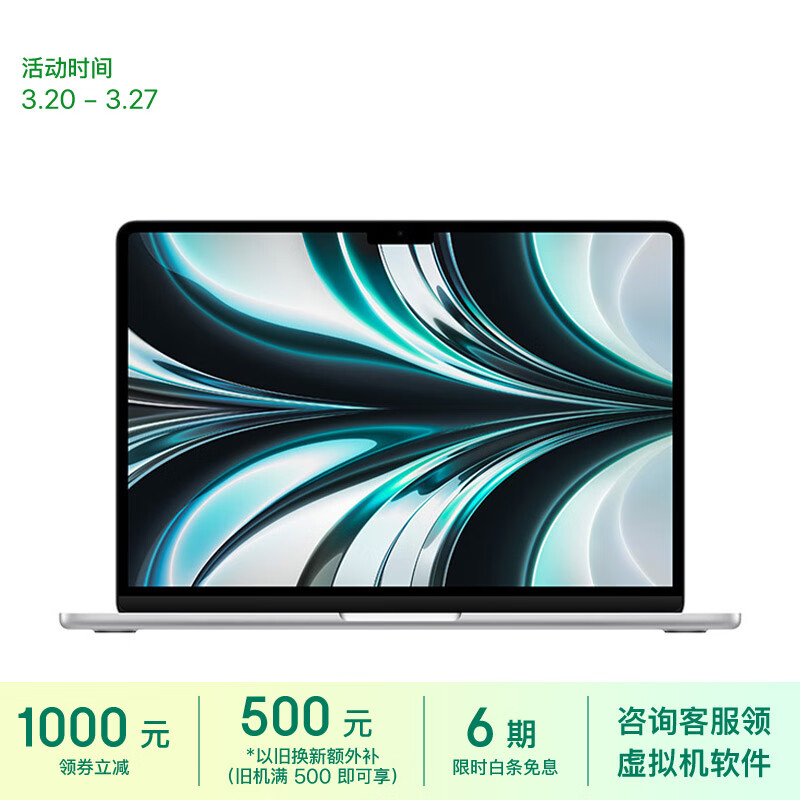 Apple/苹果2022款MacBookAir13.6英寸M2(8+10核)8G512G银色轻薄笔记本电脑MLY03CH/A价格:11499.00元!