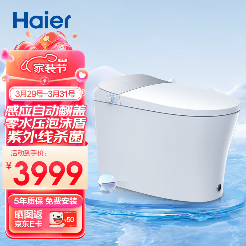 海尔(Haier)母婴级智能马桶 自动翻盖翻圈 泡沫盾杀菌全自动坐便器H3K-D740价格:4699.00元!
