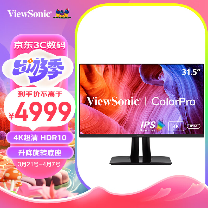 优派31.5英寸IPS设计显示器 4KHDR10Bit Type-C反向60W 10.7亿色音箱旋转升降摄影 VP3256-4K价格:4999.00元!