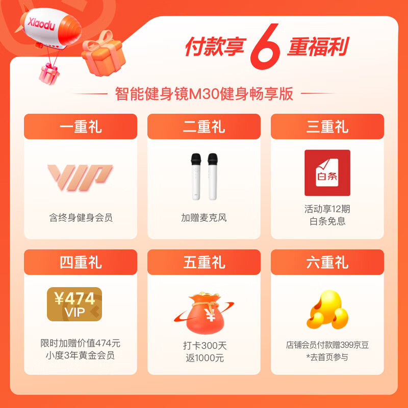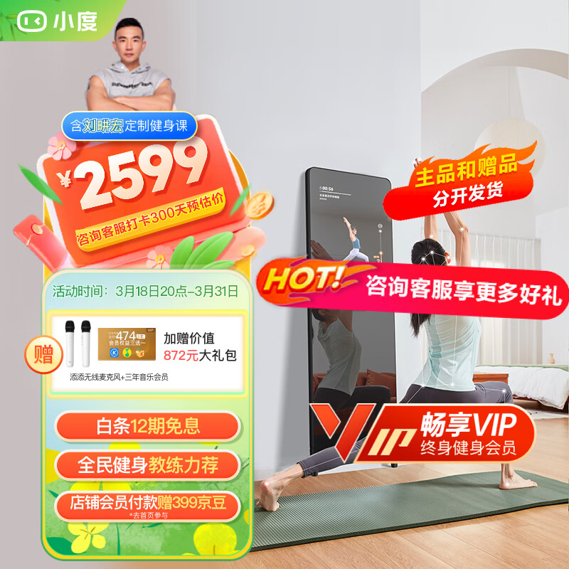 小度添添智能健身镜 M30 健身畅享版 魔镜 AI运动镜 KTV 终身会员价格:3599.00元!