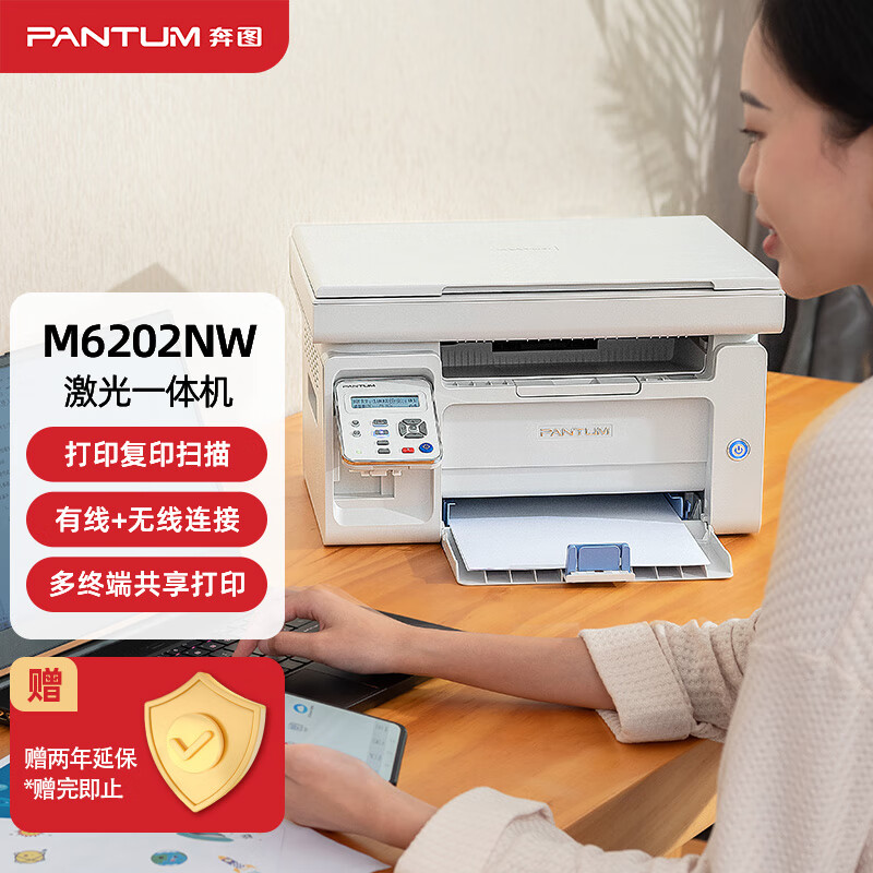 奔图(PANTUM)M6202NW黑白激光打印机 办公商用资料打印 复印扫描一体机 有线无线连接价格:899.00元!