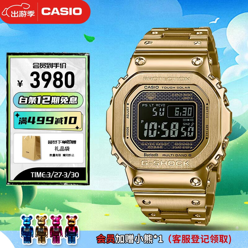 卡西欧(CASIO)手表男士经典小方块G-SHOCK运动电子表送男友GMW-B5000GD-9PRT价格:3990.00元!