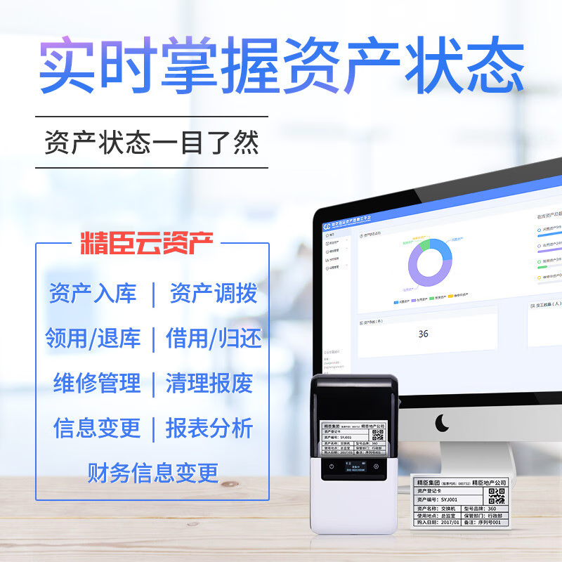 精臣 B32/M2固定资产智能标签打印机 管理系统软件二维码台账银行酒店学校办公入库盘点库存条码机 固定资产管理系统1000容量/年价格:2980.00元!