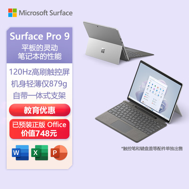 微软Surface Pro 9 二合一平板电脑 i5 8G+256G亮铂金13英寸触控屏幕?Windows办公笔记本电脑 教育优惠价格:6888.00元!