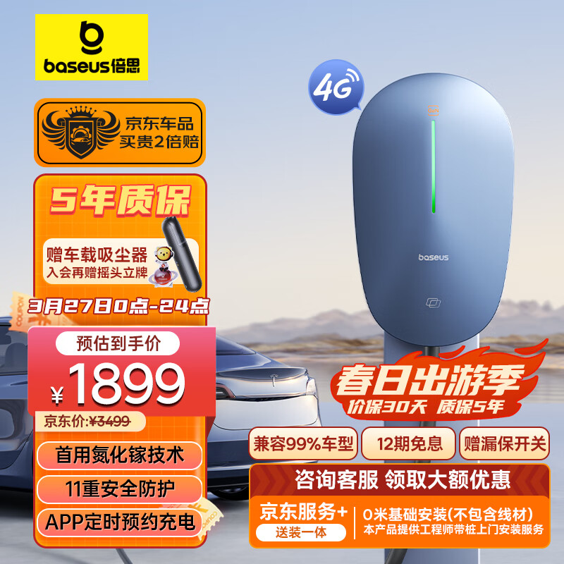 倍思 适用特斯拉充电桩新能源7kw家用充电桩比亚迪小鹏蔚来极氪通用(送装一体)4g联网含基础安装价格:4009.00元!