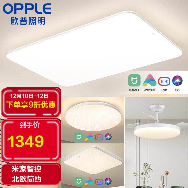 欧普(OPPLE)LED吸顶灯客厅灯时尚超薄客厅卧室灯具灯饰套餐 凝月s白智能10价格:1499.00元!