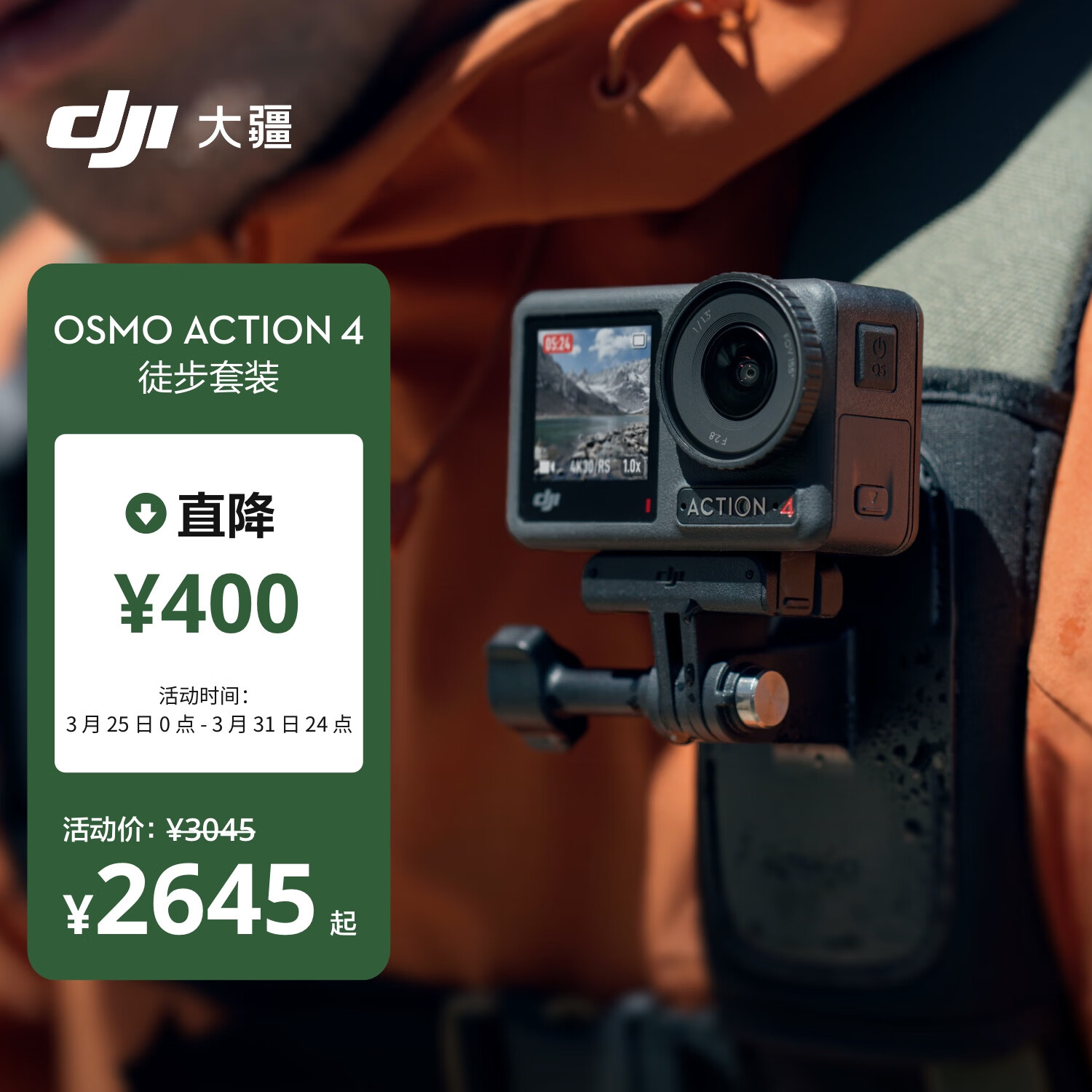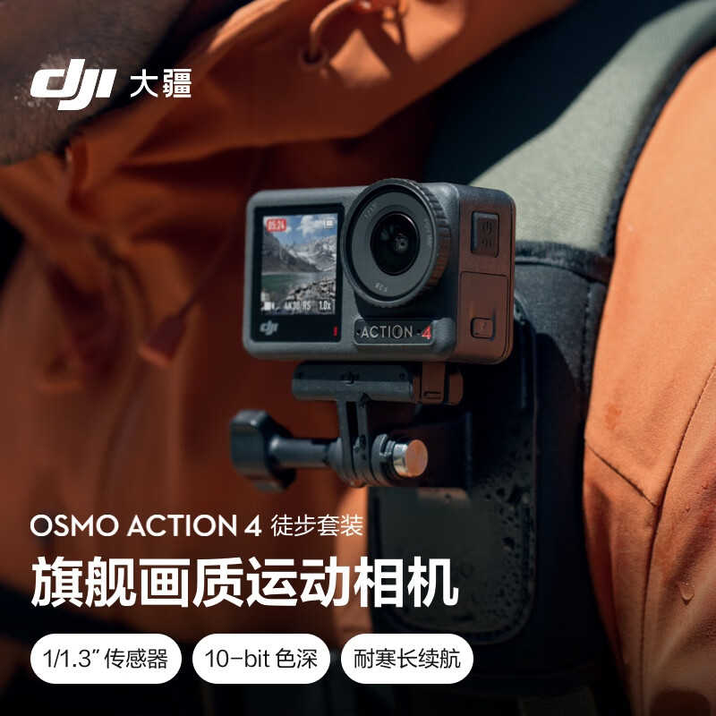 大疆 DJI Osmo Action 4 徒步套装 灵眸运动相机 摩托车山地公路骑行潜水防抖户外vlog相机 手持摄像机价格:2645.00元!