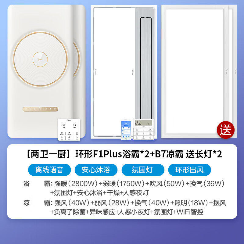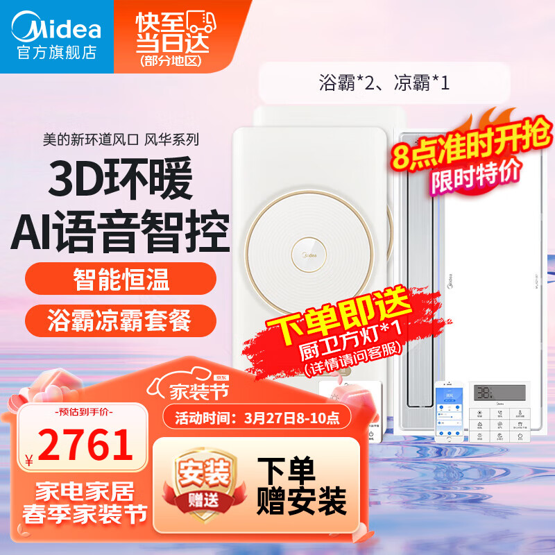 美的(Midea)风暖浴霸集成吊顶卫生间取暖器浴室环形智能双电机语音换气暖风机价格:2761.00元!