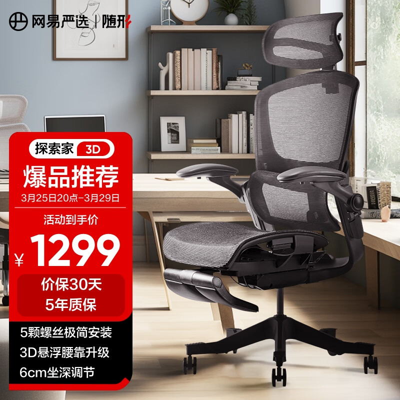 网易严选探索家经典款有搁脚 人体工学电脑椅办公电竞老板会议学习椅凳子价格:1899.00元!