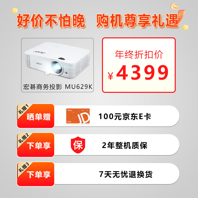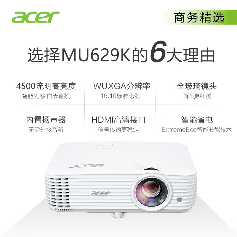 宏碁(Acer)MU629K 投影仪 投影机 投影仪办公(超高清WUXGA 4500流明 高对比度 中大型会议室)价格:4699.00元!