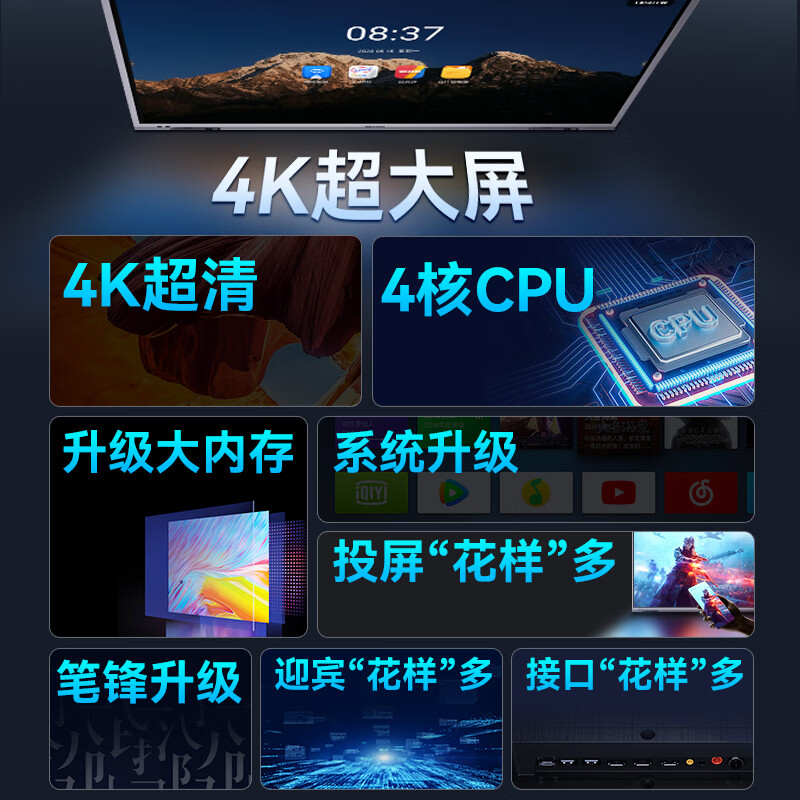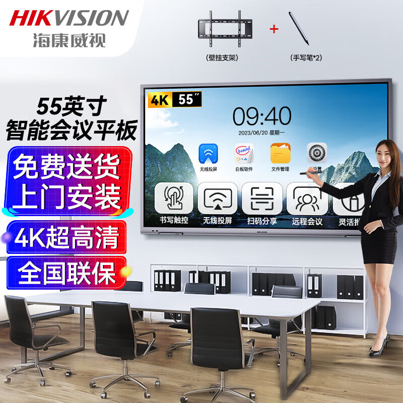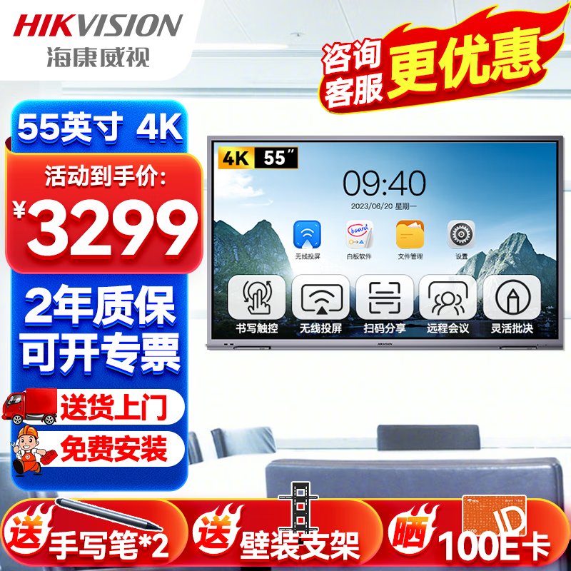 HIKVISION海康威视会议平板一体机55英寸智能视频会议电子白板教学办公会议大屏4K防炫屏安卓11系统4核CPU价格:3499.00元!
