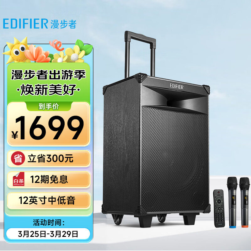 漫步者(EDIFIER)PW312 12英寸舞台级户外移动音箱 广场舞音箱 蓝牙拉杆音响 便携式音响 户外露营价格:1699.00元!