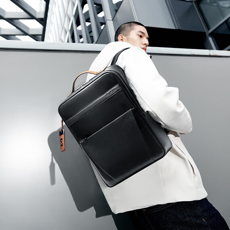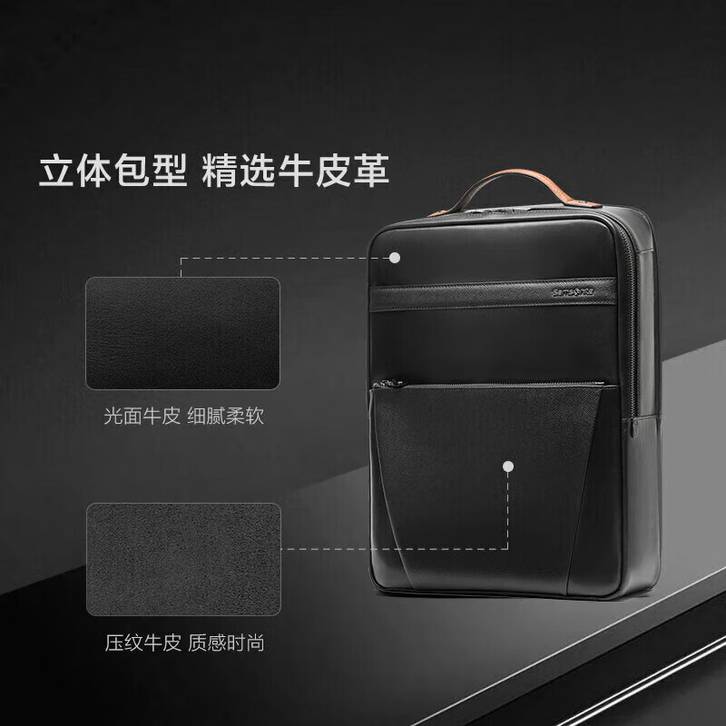 新秀丽(Samsonite)双肩包男士商务14英寸电脑包时尚牛皮革背包 TM0*001【黑色】价格:1580.00元!