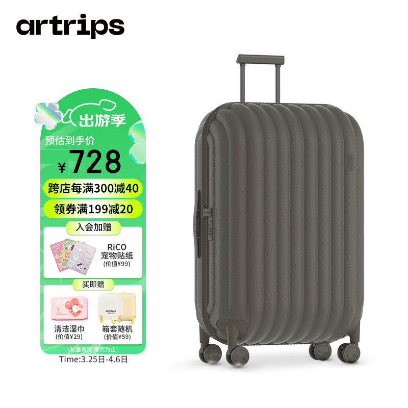 artrips行李箱男女拉杆箱28英寸大容量旅行箱面包款万向轮皮箱子 椰棕灰价格:878.00元!