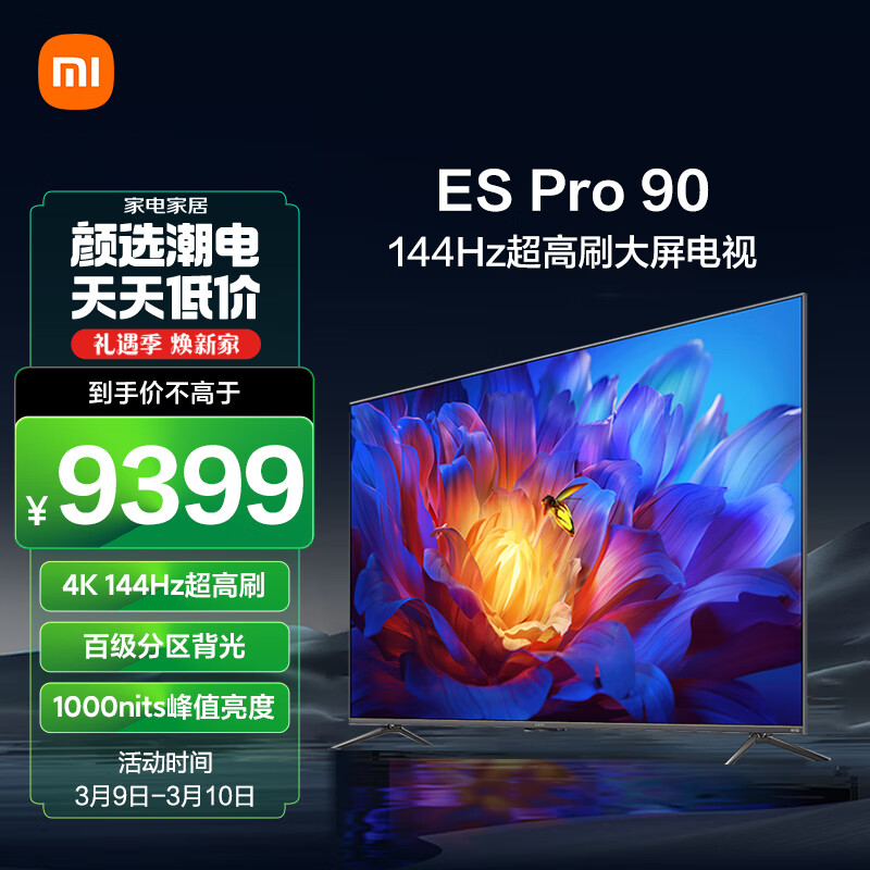 小米游戏电视ES Pro 90英寸百级分区背光 85英寸+ 144Hz高刷液晶平板电视机L90M9-EP以旧换新价格:9399.00元!