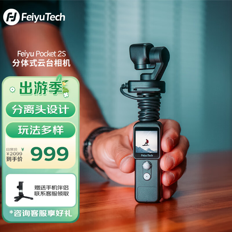 FeiyuTech飞宇Feiyupocket2S口袋云台相机带分离头运动相机高清4K增稳vlog摄像机百变穿戴三轴云台防抖标配价格:1099.00元!