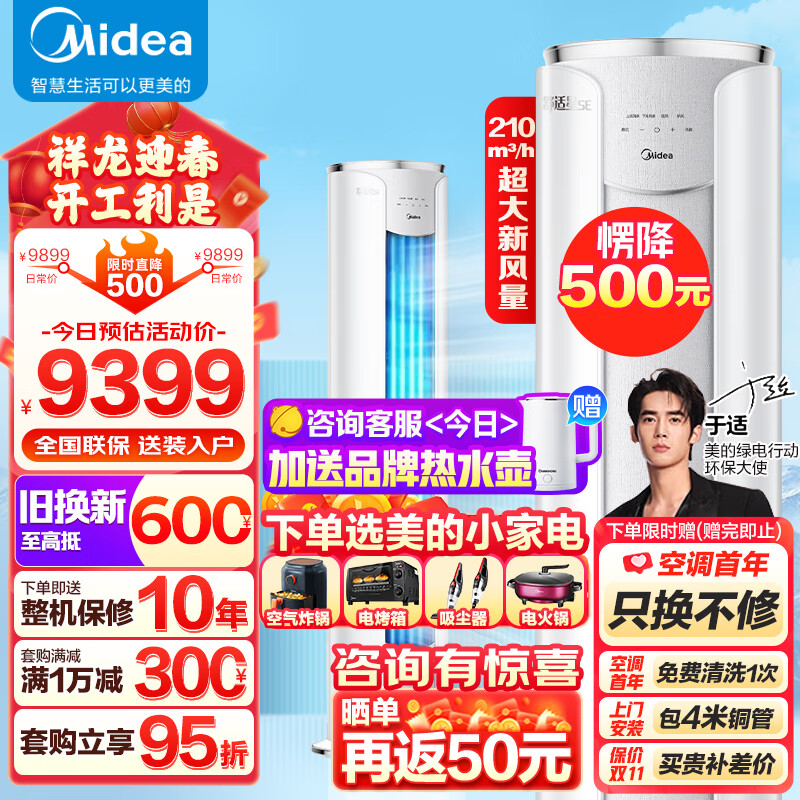 美的(Midea) 舒适星SE 大3匹 新一级变频冷暖 换新风无风感 家用圆柱立式空调柜机 KFR-72LW/K1-1A 以旧换新价格:9399.00元!