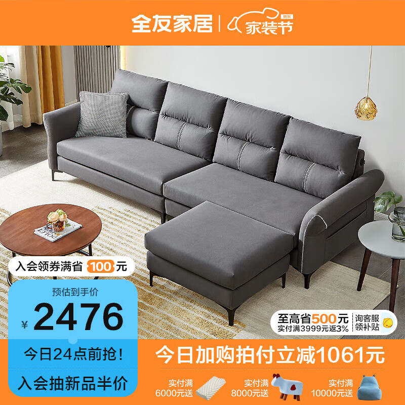 全友家居 现代简约功能科技布艺可拆洗储物小户型直排沙发客厅102679价格:3537.14元!