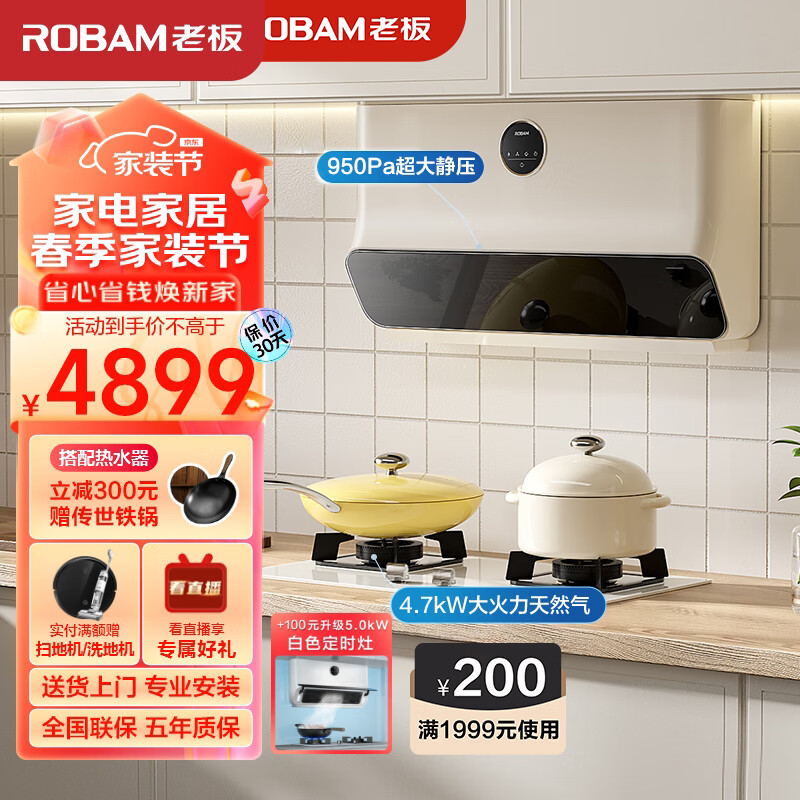 老板(Robam)抽油烟机白色超薄大吸力烟机80cm小尺寸23风量家用变频灶具燃气灶烟灶套装22A3S套装(天然气)价格:4899.00元!