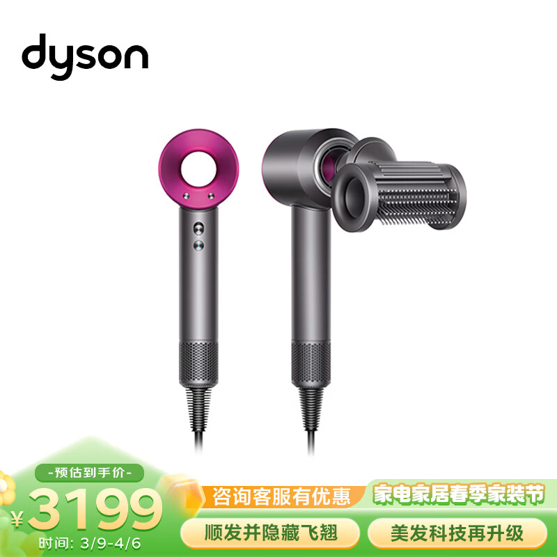 戴森(DYSON)新一代吹风机 Dyson Supersonic 电吹风 负离子 进口家用 HD15 紫红色 438985-01价格:2999.00元!