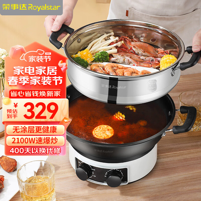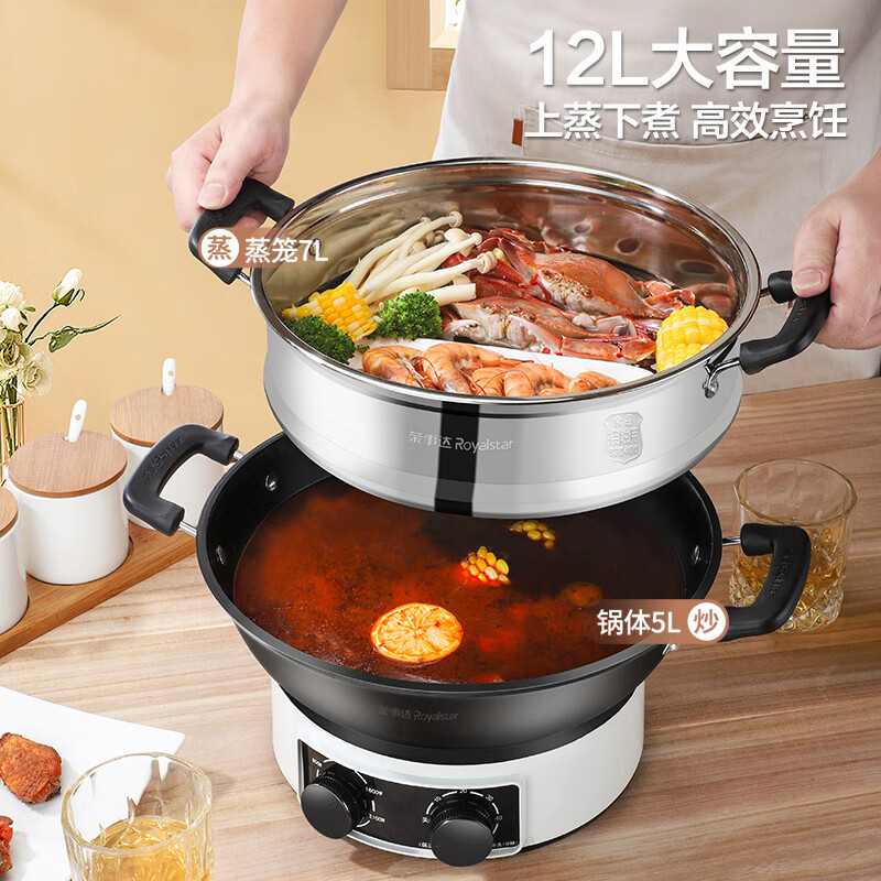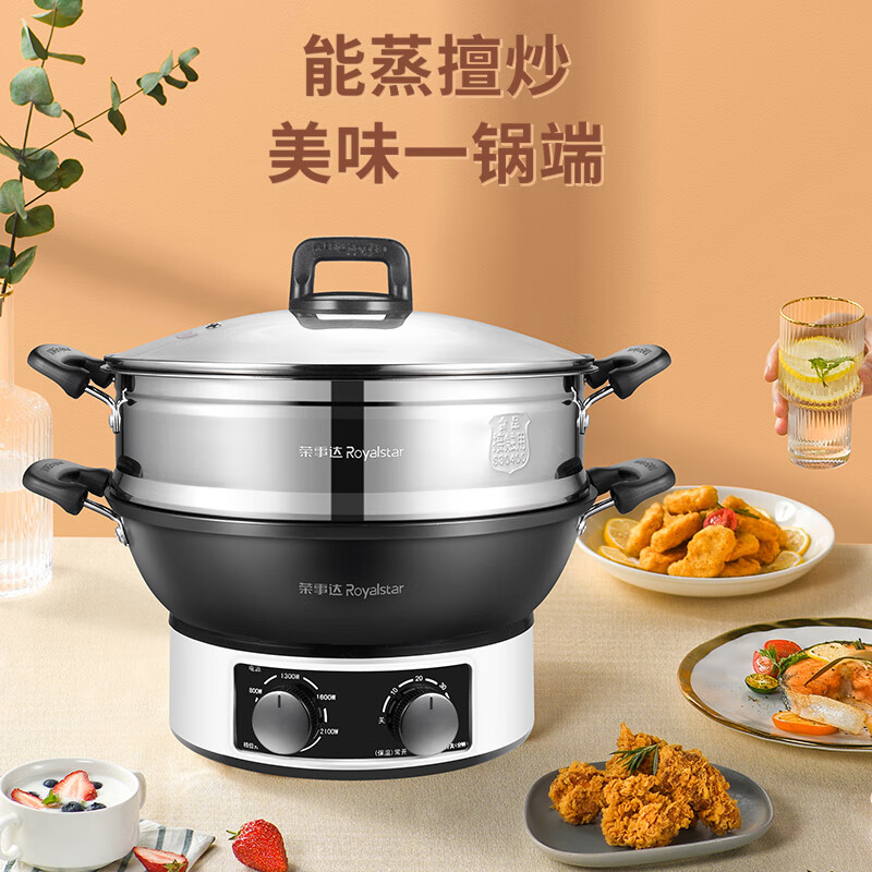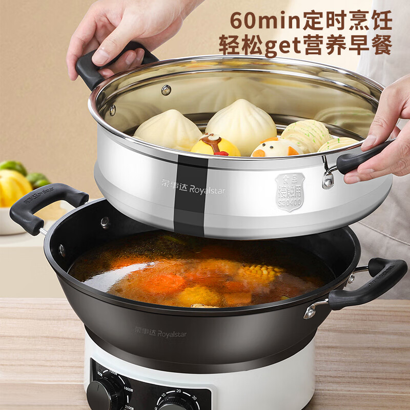 荣事达(Royalstar)电炒锅家用多功能蒸包子锅32CM山东锅电锅电炒锅电煮锅电火锅电蒸锅RDG-T32CG单笼价格:329.00元!