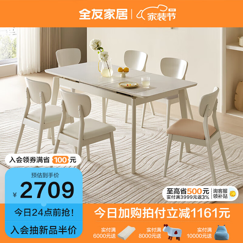 全友家居 餐桌现代简约岩板餐桌可伸缩功能餐桌吃饭桌子家具DW1120C价格:3870.00元!