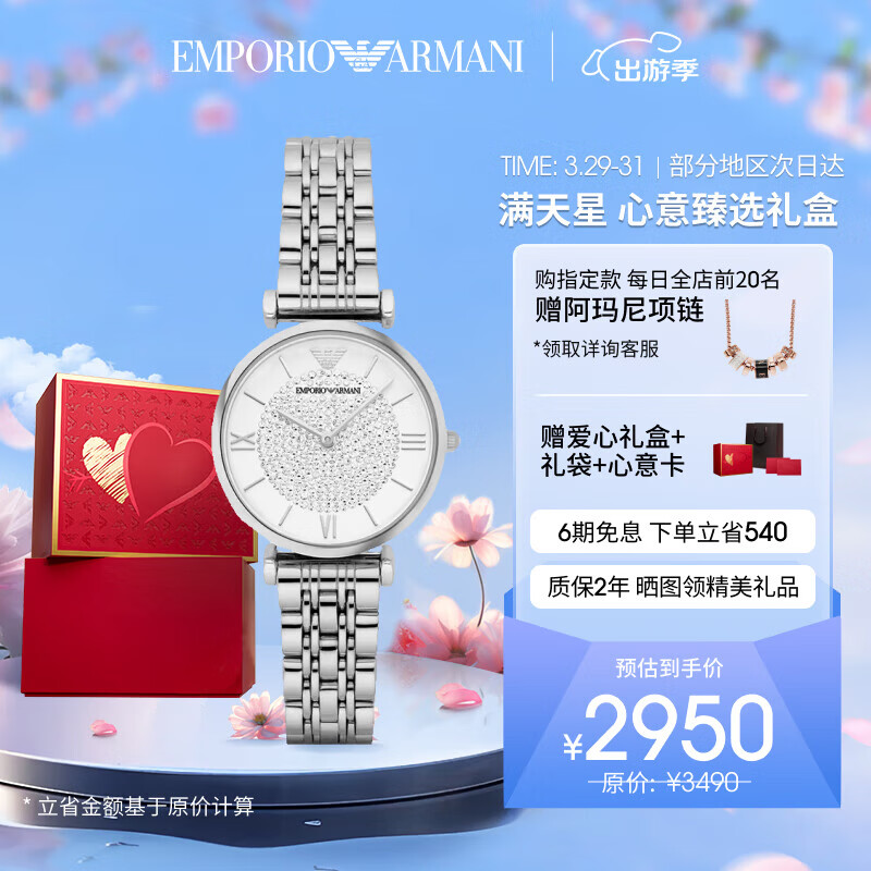安普里奥·阿玛尼(Emporio Armani)手表女士 满天星系列钢带石英镶钻女士腕表 送女友生日礼物AR1925价格:3250.00元!