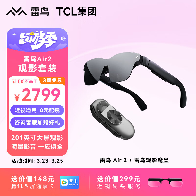 雷鸟Air2 智能AR眼镜 高清巨幕观影眼镜 120Hz高刷 便携XR眼镜 非VR眼镜vision pro平替 魔盒套装价格:3199.00元!