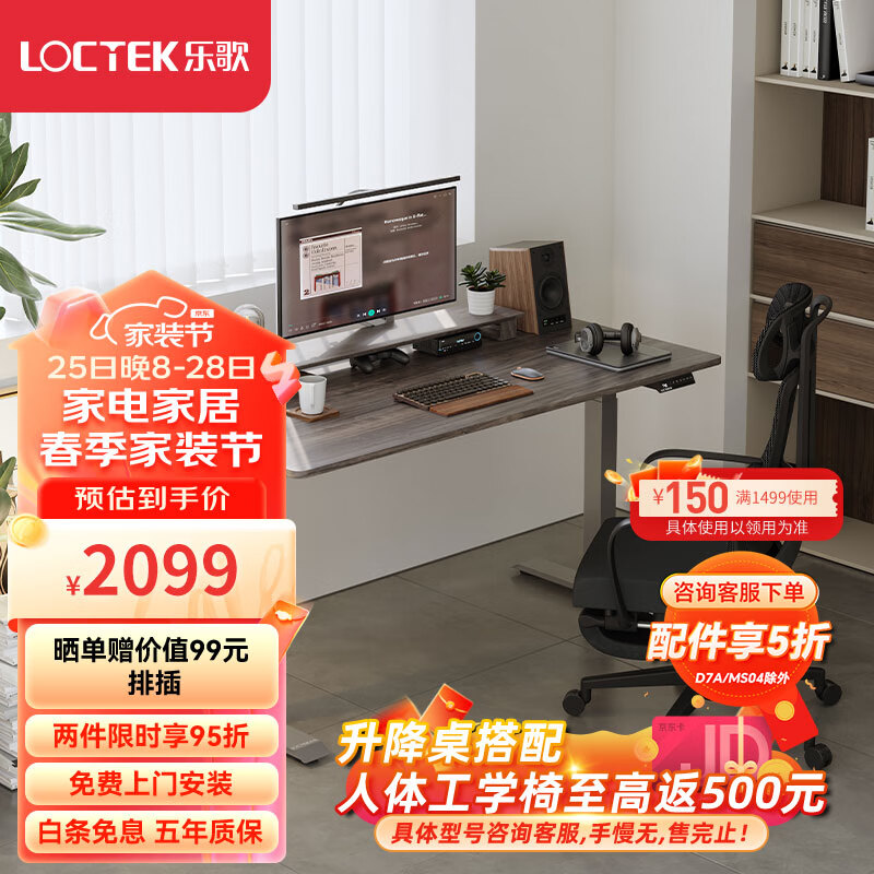 乐歌电动升降桌电脑桌双电机站立办公家用书桌E3/1.6m灰胡桃木色套装价格:2099.00元!