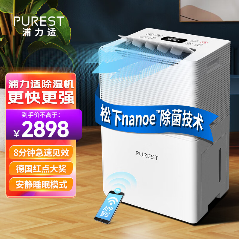 浦力适(PUREST) 除湿机/抽湿机 53升/天大除湿量 松下nanoe净化 家用大户型除潮干衣机 APP智控 N50价格:2828.00元!